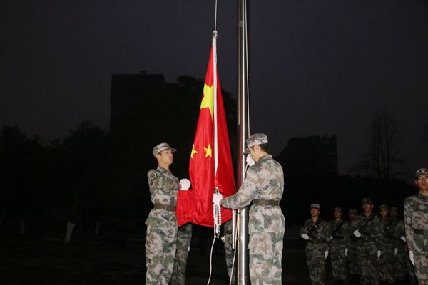 在国旗的见证下,军事爱好者协会学生曾永康进行了主题发言。他畅谈自己爱党爱国理想、爱校护校情怀,向同学们展示了青年应有的热血豪情和革命先烈的大无畏的精神,立志磨练意志,成长进步,报效国家!