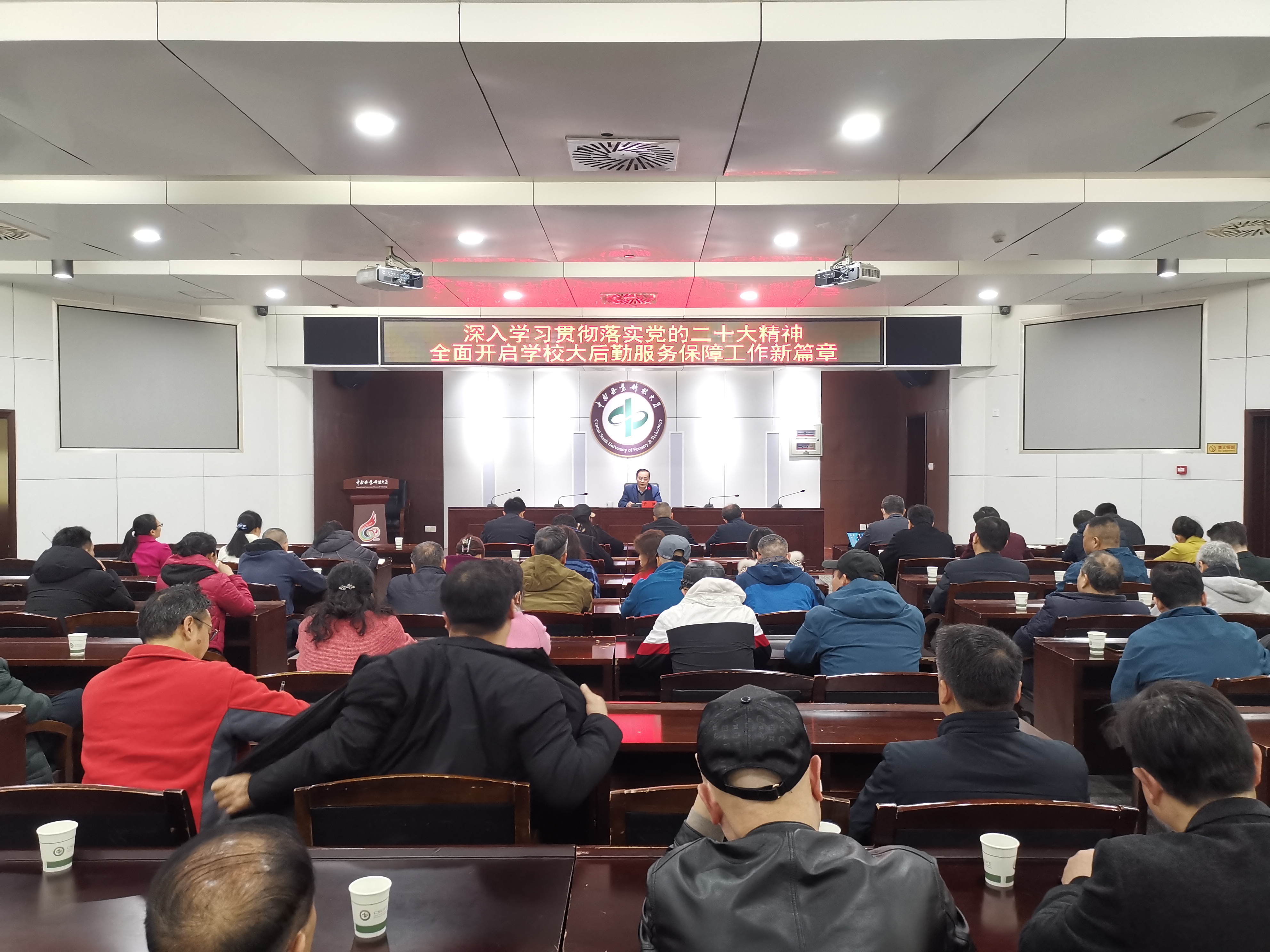 尹健副校长传达学习了学校务虚会精神和党政例会精神;对四个部门2022年完成的主要工作情况作了总结,指出了学校在大后勤建设中需要解决的十个方面问题,并对2023年春季工作中全面开启学校大后勤服务保障工作作了部署。
