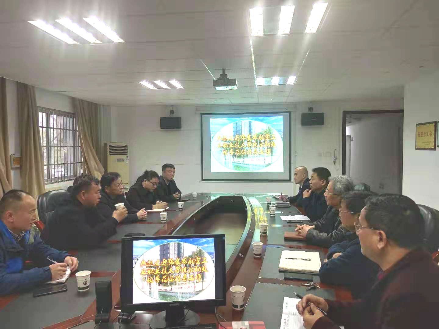 11月24日下午,张家界航空工业职业技术学院后勤与资产管理处处长覃永、书记肖征碧等一行5人来我处进行调研交流。后勤管理处处长唐立新、处党总支书记胡建刚、处党总支副书记兼副处长曾阳军,以及后勤相关科室负责人、保利天创物业负责人参加了调研座谈。