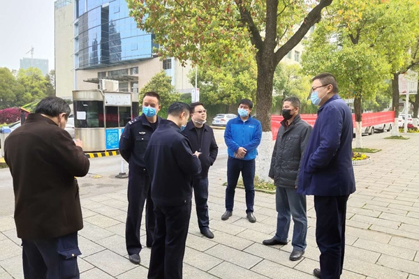 2020年3月18日,天心区政法委副书记陈国其带领文源街道姜文志副主任、公安分局巡警大队朱建华大队长、文源派出所魏星星所长等人,检查星城园丁巡防巡控示范工作站的建设情况,我校保卫处处长张先勇、副处长唐智勇陪同检查。