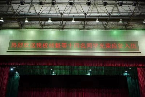 2019年9月9日下午,我校在体艺馆举行大会,热烈欢送2019年入伍大学生。党委副书记秦立春出席,武装部、学工部相关人员,2019年入伍大学生及家属代表、2019级新生、全体教官及各学院辅导员参加,会议由武装部部长张先勇主持。