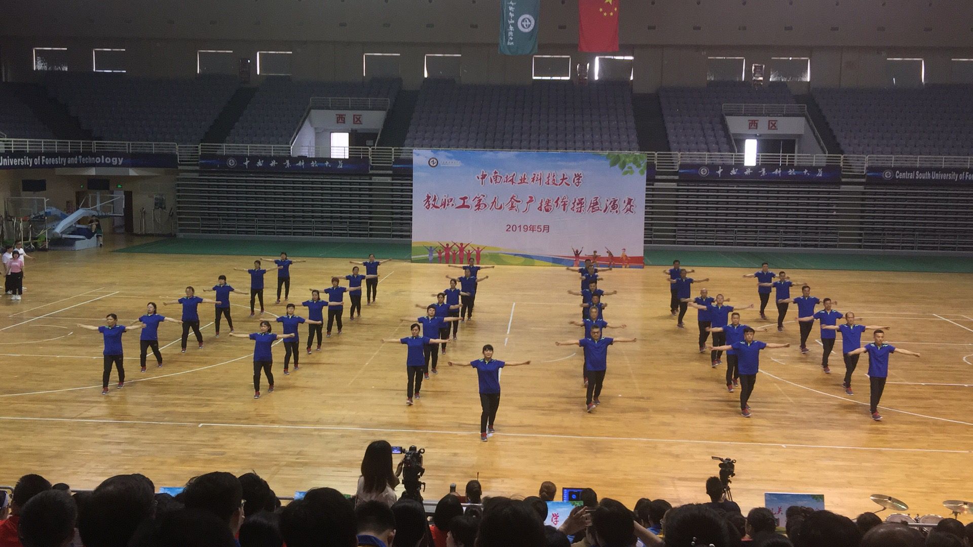 5月14日下午学校工会在体育艺术馆组织全校28个分工会教职工参赛队开展了“中南林业科技大学教职工第九套广播体操展演赛”,后勤管理处37名教职工代表后勤分工会参加了比赛并荣获三等奖。