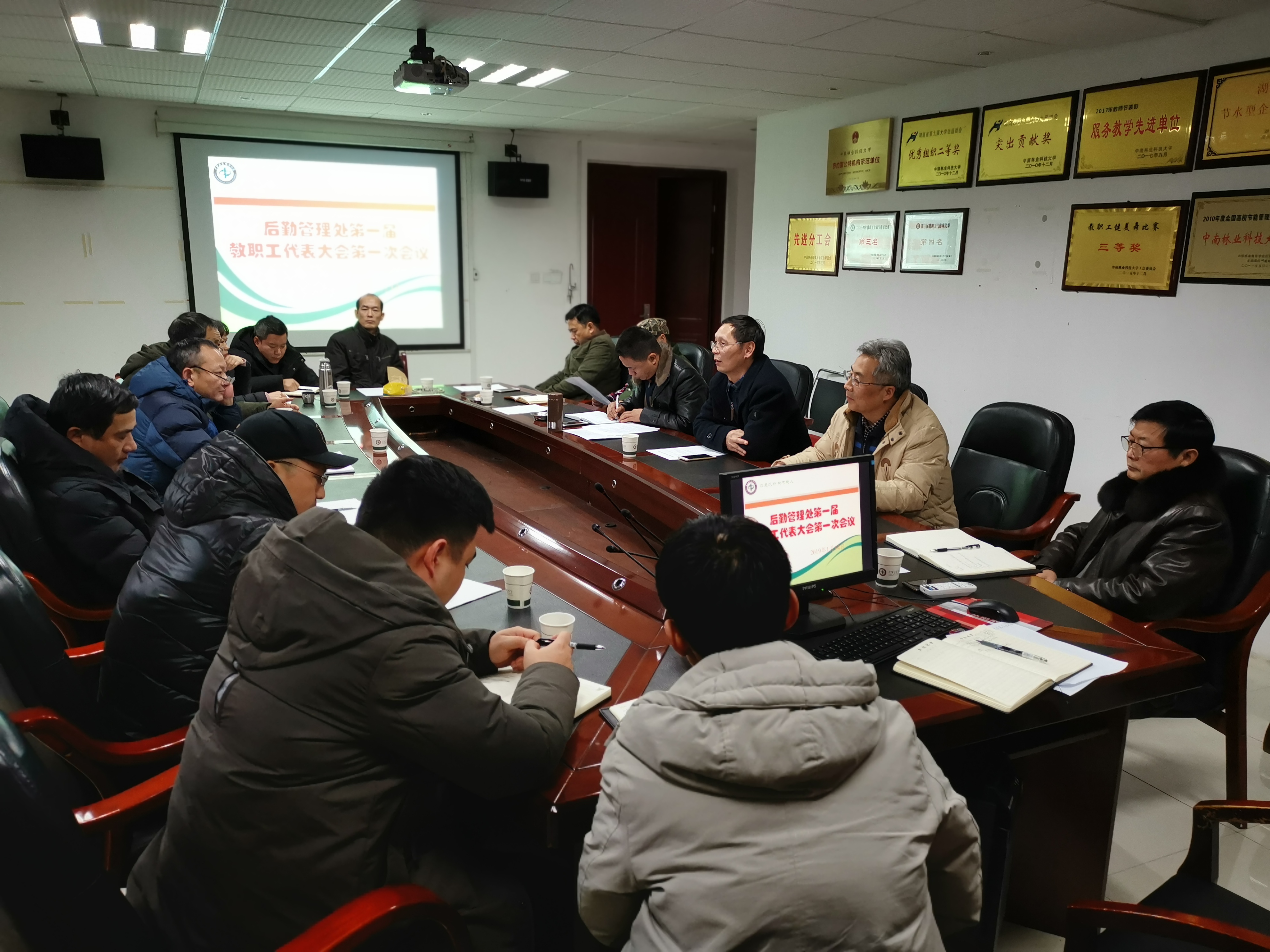 2019年1月14日下午,后勤管理处教职工代表大会在处会议室隆重召开。大会应出席代表32人,实际到会代表31人。大会由后勤管理处党总支书记、分工会主席胡建刚主持。学校工会常务副主席陈树生同志出席大会并讲话。
